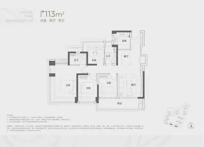 建面约113㎡4房2卫
