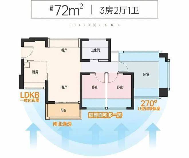 80㎡是本批次产品中唯一设计为南北对流格局,而且是整体横向采光,位于1栋,仅有2条腿,朝向社区内部园林相对静谧。