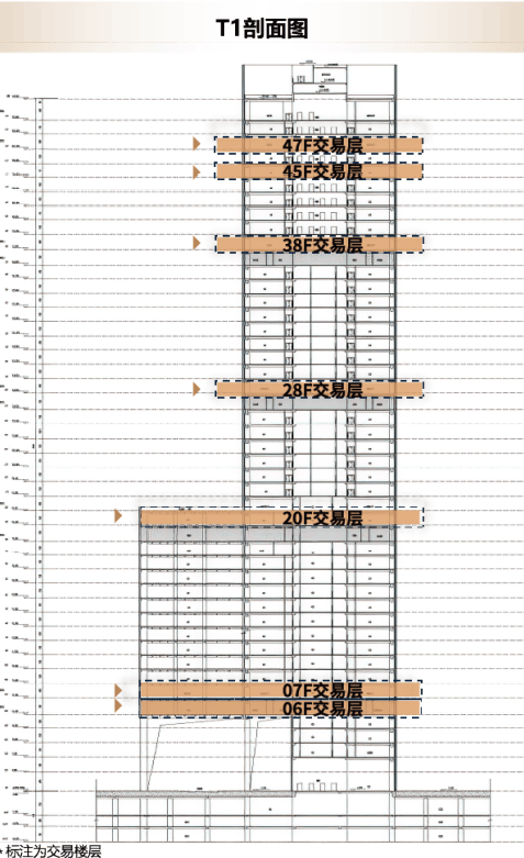 前海交易广场T1栋,以220米楼高傲然矗立于前海核心区域。20层以上每4层设置有空中花园+观景台,可远眺城市天际线与壮阔海景。地上共47层,标准层面积2400-3100平方米,并设有7个交易楼层(层高4.8m)。