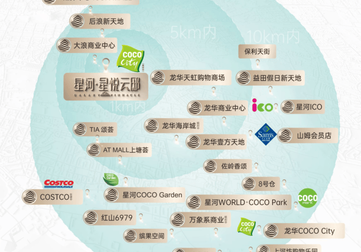 深圳第三座星河COCO City(规划中)强势进驻,领衔龙华中轴超200万㎡繁华商圈约1公里,家门口的明星购物体验,再加占地超19万㎡大浪商业中心,约5-10公里 是生活到繁华的距离近邻龙华星河iCO、壹方天地、红山6979、华南首家COSTCO(预计2023年第四季度开业)、未来龙华海岸城(规划中)、华润万象系商业(约13.4万㎡规划中)等陆续登场。