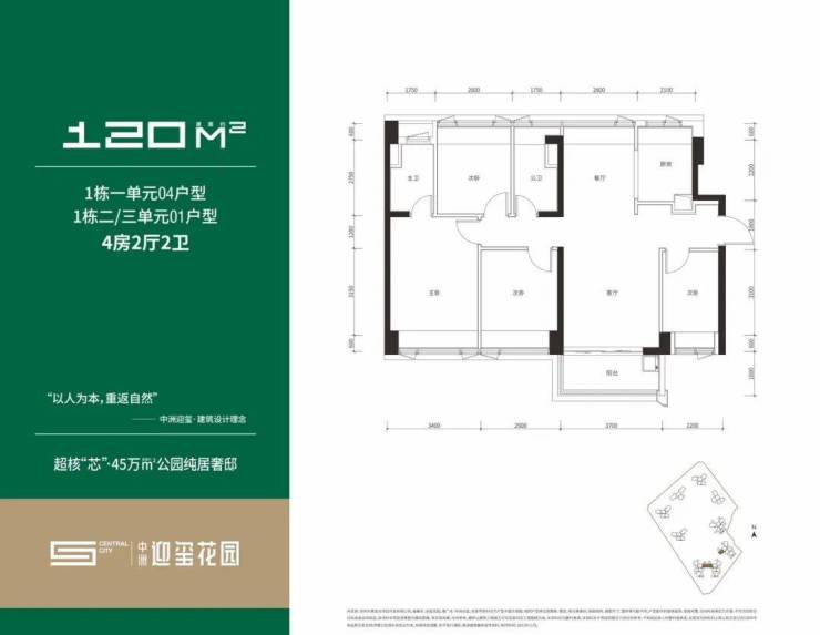 120㎡g共有2个户型,坐北朝南,客餐厅双面采光的同时,做到了四开间向南,全屋采光通透无暗角。小区中较好的景观面,能看小区内部中庭园林景致。使用率约85%,实际面积102㎡。
