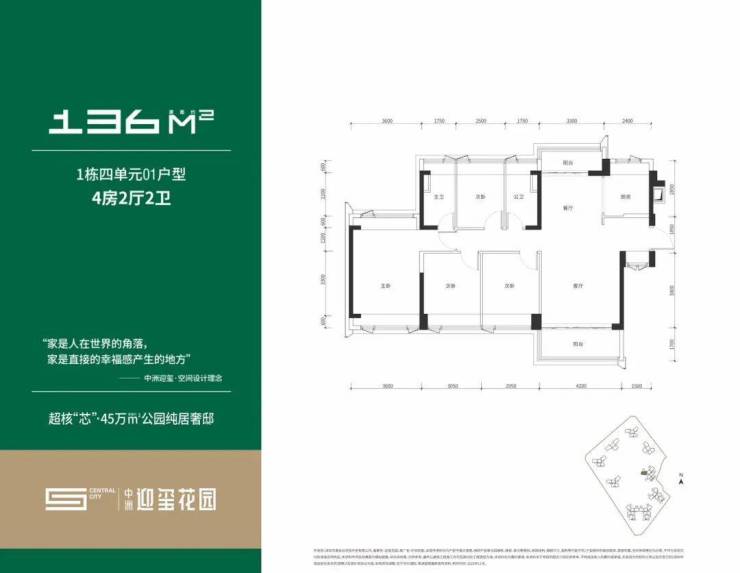 阔绰尺度低密舒居:近180M楼间距,车位比超1:1,区域内最低容积率约4.24,片区稀缺2梯4户/3梯4户/3梯3户,高私密性,高舒适性。