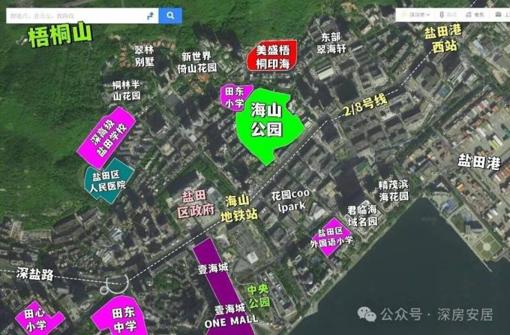 交通配套:美盛梧桐印海的交通配套极为便捷,与2/8号线盐田港西站直线距离约700米,海山站直线距离约900米,2站可直达罗湖,10站可达福田CBD。地铁8号线二期、三期工程稳步推进,2025年已全线贯通 ,为住户提供快速通勤选择。