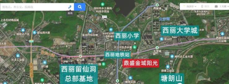 项目西侧为西丽留仙洞总部基地,东北侧为大学城,东侧为塘朗山,西南侧是西丽高铁站。