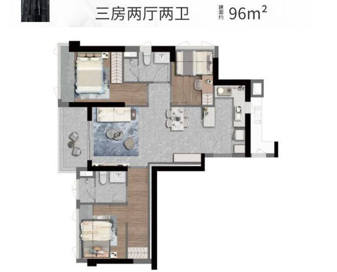 96㎡3房2卫