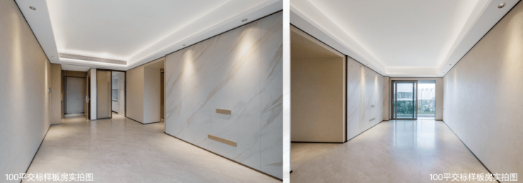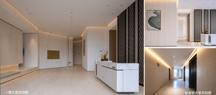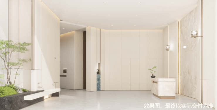 来到入户大堂,米黄石材+玉石打造的背景墙,温润雅致,低调而不失格调。