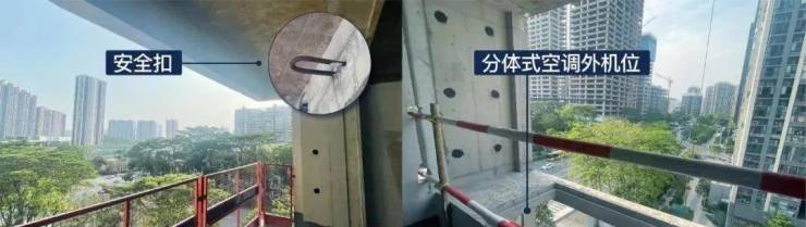 各户型均配置两处约500kg受力二级扣逃生装置,每处设2个安全扣(两处分别为:阳台、设备平台),与建筑主体同步浇筑,结构安全性显著提升。