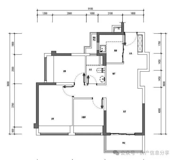 独立冰箱凹槽,宽阔飘窗设计,空间极致化