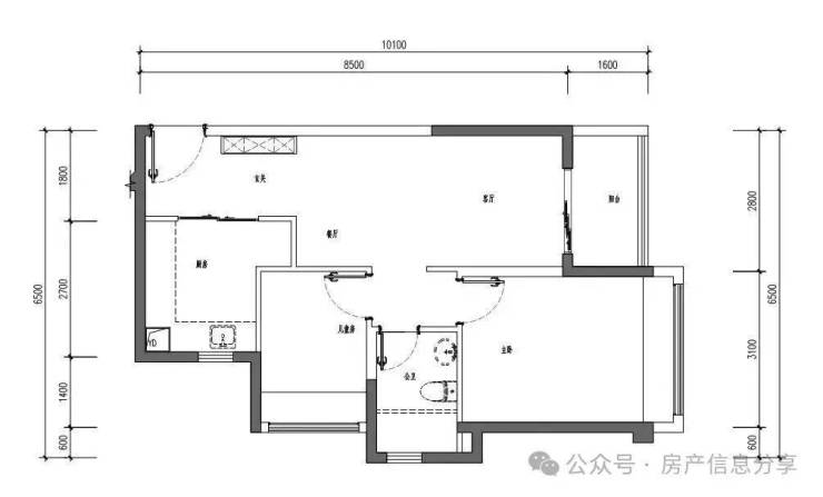 约3.5米宽阔主卧,酒店式套间,私密性更佳