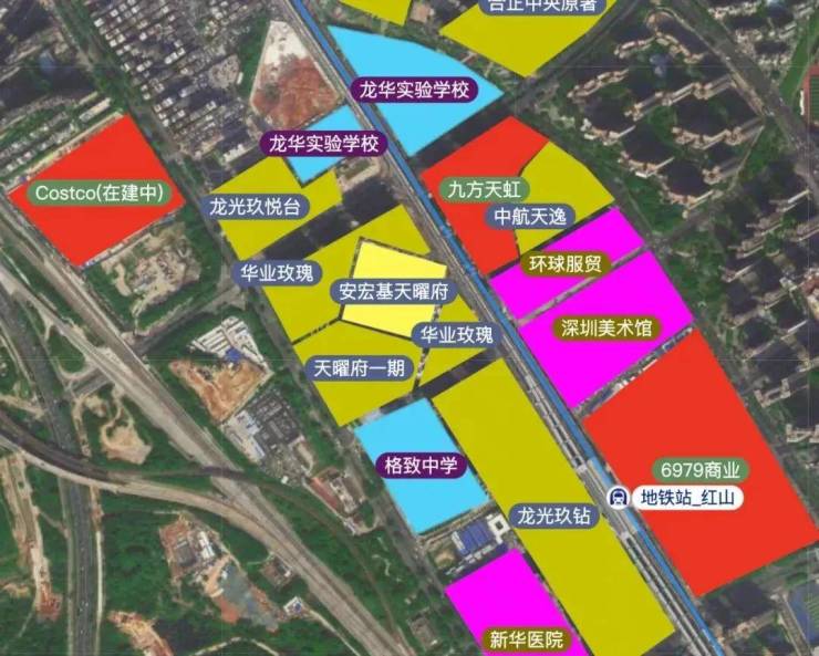 安宏基天曜府所在的华红山片区,该片区是目前龙华区居住氛围较为浓厚的片区,整体面貌较新,配套资源较为丰富,生活配套成熟,汇集了地铁、商业、学校等配套。红山往上有上塘CLD,往下更有深圳北站核心区,占据了龙华核心的地理位置。
