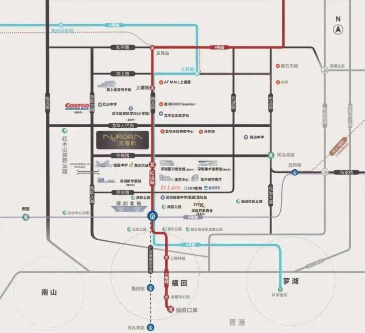 项目地址:深圳龙华红山·天虹商场对面,距离地铁4/6号线红山站约450米