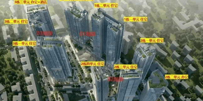 规划为3栋超高层塔楼,3栋一单元住宅174米53层,3栋二单元住宅178米53层,3栋三单元办公+酒店170米36层。