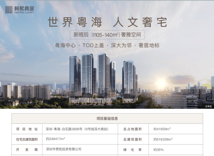 翰熙典居,逾50万㎡地标级奢居综合体,2025年深圳市重大建设项目之一。项目三个地块一次性整体开发,彰显枫叶集团雄厚实力,及打造中心人文奢宅、城市地标之作的恢弘之志。