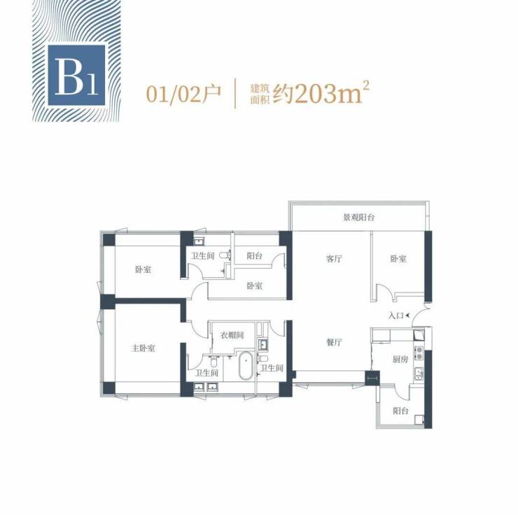 🎊【B1 户型(一栋 二单元01/02)——203 ㎡】🎊