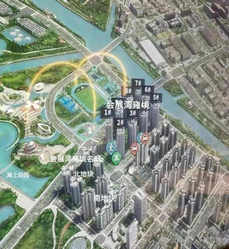会展湾雍境,与12号线地铁海上田园南站A口直线距离约50米。