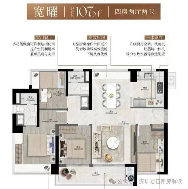 【建筑面积107㎡4房2卫】