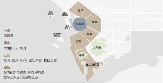 整体规划:湾区一体化、一湾/两山/五区/四岛