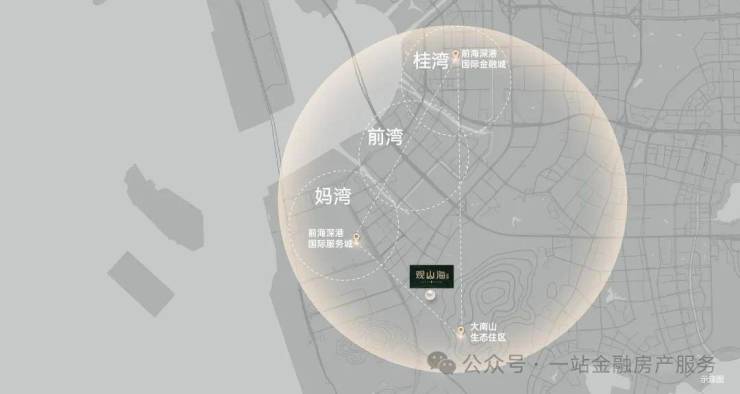 项目所在前海合作区大、小南山片区西组团规划定位重点安排教育、配套、体育等公共服务设施和生活服务设施(数据来源:《中国(广东)自由贸易试验区深圳前海蛇口片区及大小南山周边地区综合规划》与【桂湾】国际金融城和【妈湾】深港国际服务城两大前海核心区引擎形成前海黄金三角,工作、生意生活尽在掌握