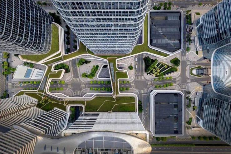 前海合作区构筑多模式一体化综合交通体系,建立以轨道交通为主体、各类交通方式协调发展的交通系统,规划各类轨道线路12条,总长度约53公里,轨道网络密度3.5公里/平方公里。港深西部快轨10分钟可到达深圳和香港两大国际机场。前海规划完善的慢行系统,包括自行车道系统和步行系统。自行车道总长共36.8公里。