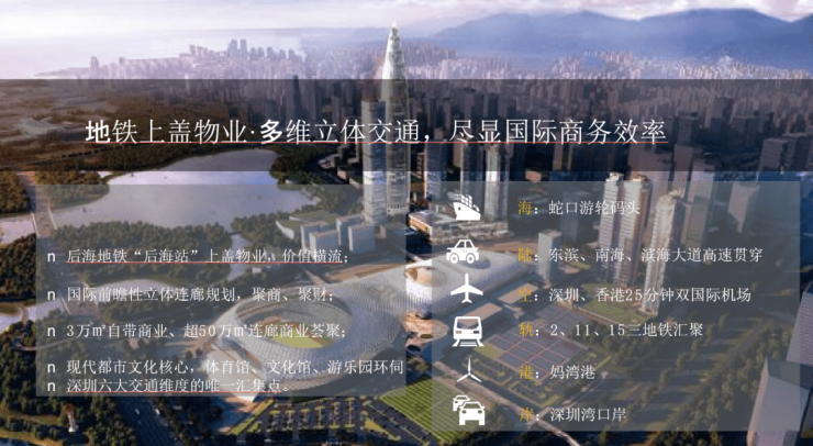 后海地铁站上盖物业、坐拥三条地铁线;