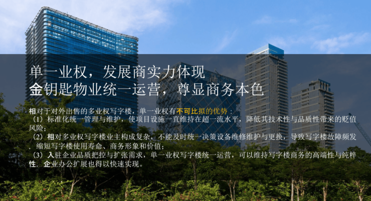 相对于对外出售的多业权写字楼,单一业权有不可比拟的优势;