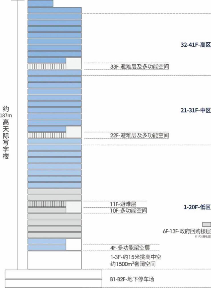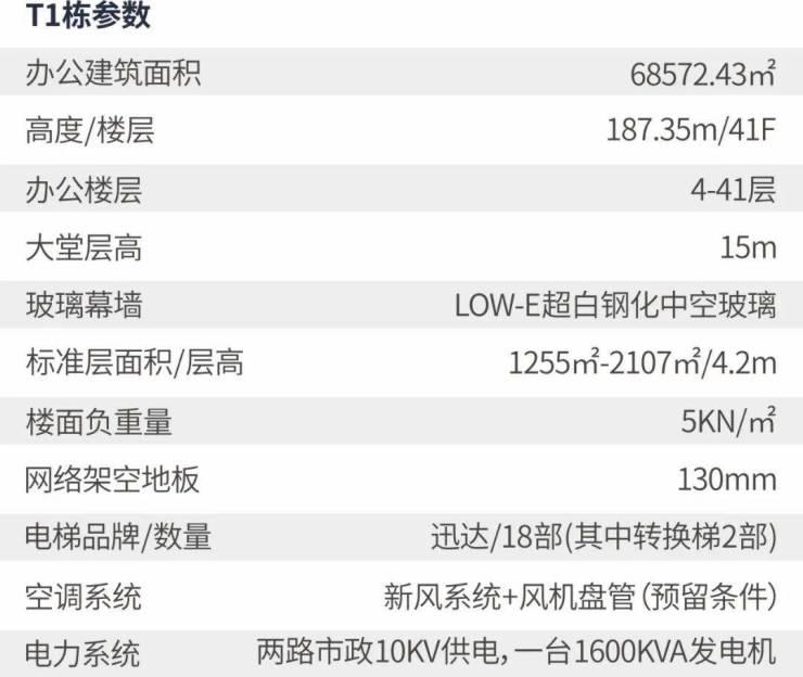 T1栋约187米商务坐标,建面约446-2099㎡空中总部,适配多种时期企业所需