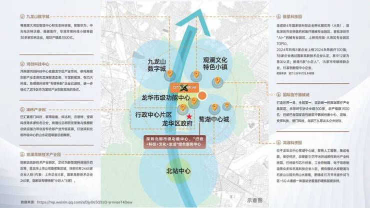 观澜占据龙华70%产业,鹭湖中心城与九龙山数字城双核驱动,聚焦人工智能、生物医疗等高新技术产业;