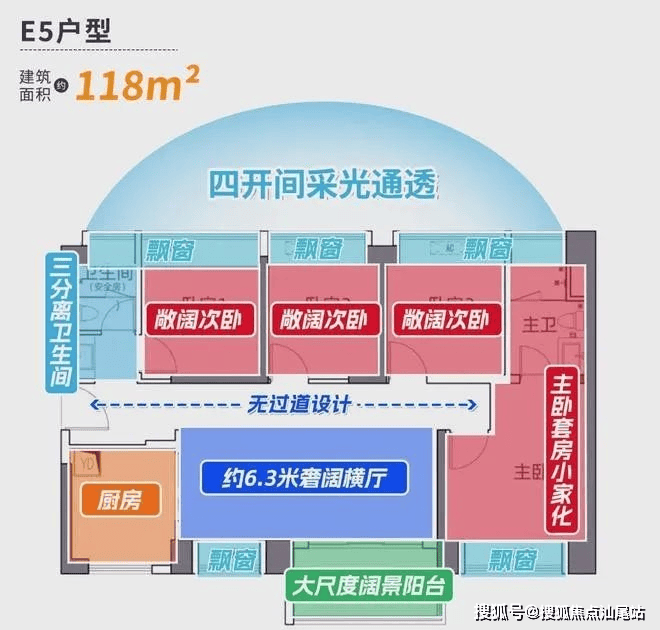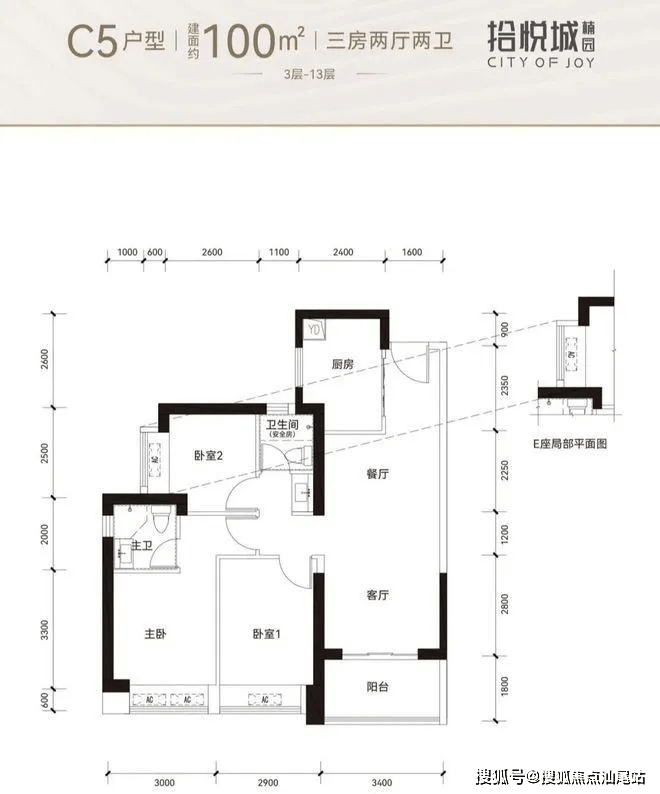 【建面107㎡3居】-分布于E座 B座 ,4梯7户,层高3.00米,总楼层48-53F