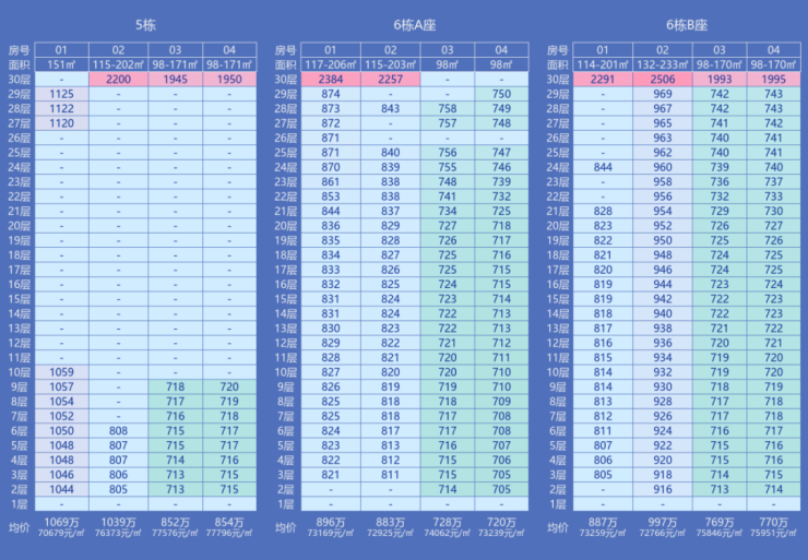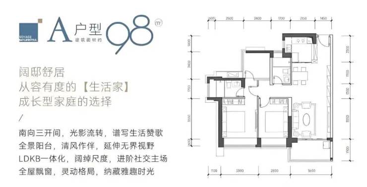 约98㎡三房两卫,售价在650~700万之间;