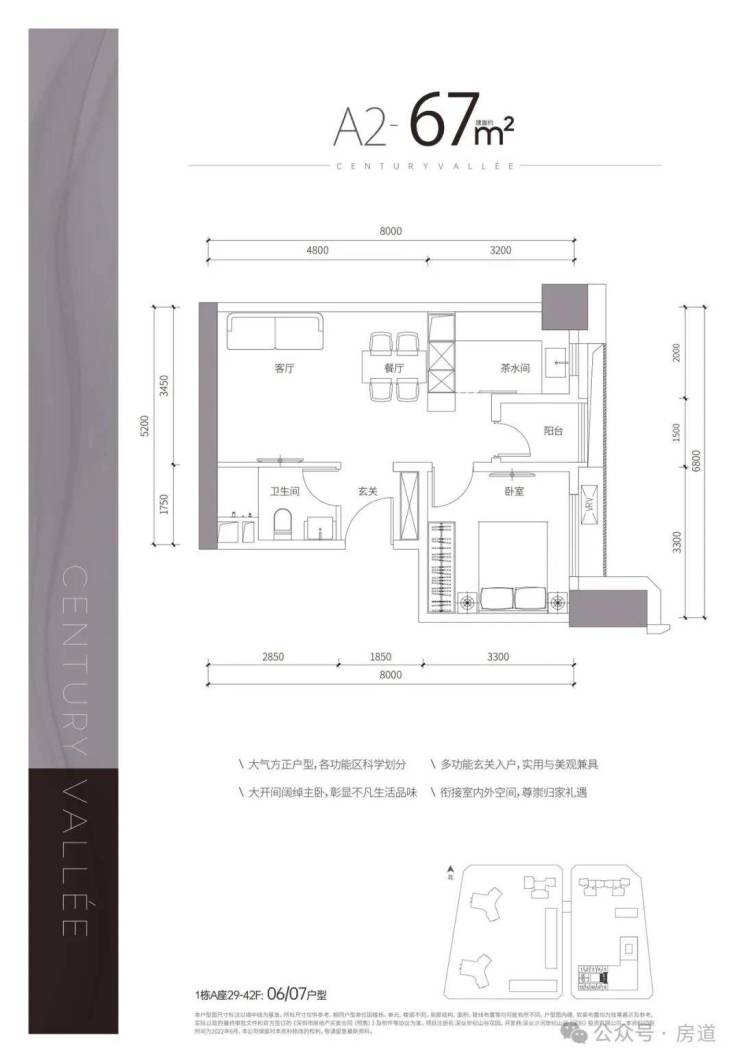 A2户型——建面约67㎡1房