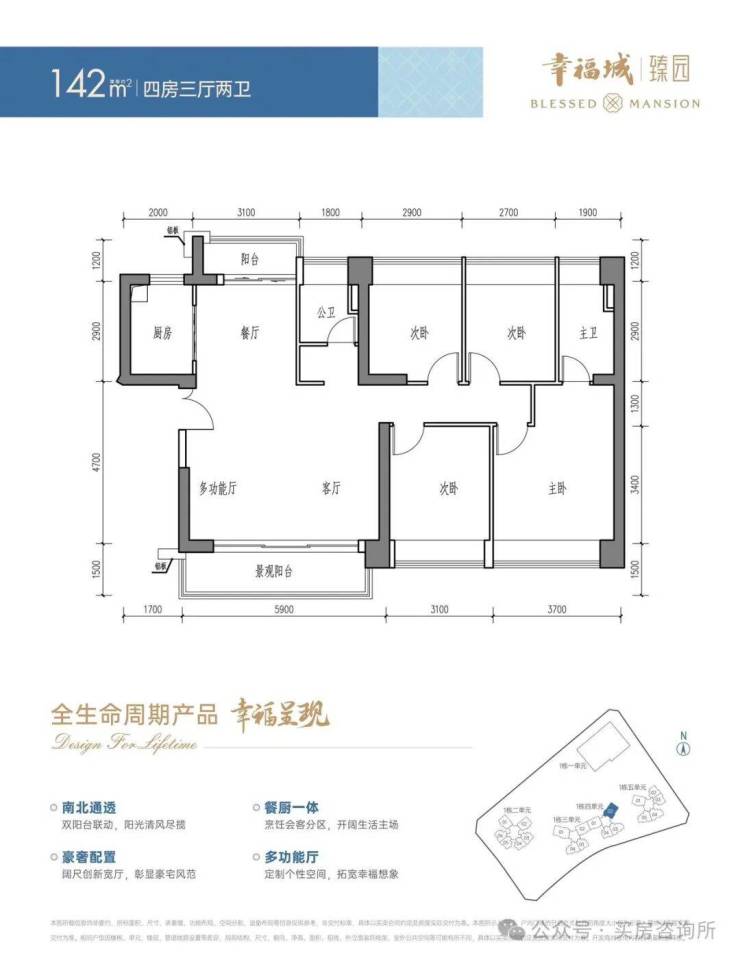 约142㎡4房3厅2卫(方厅),折后:约800-850万