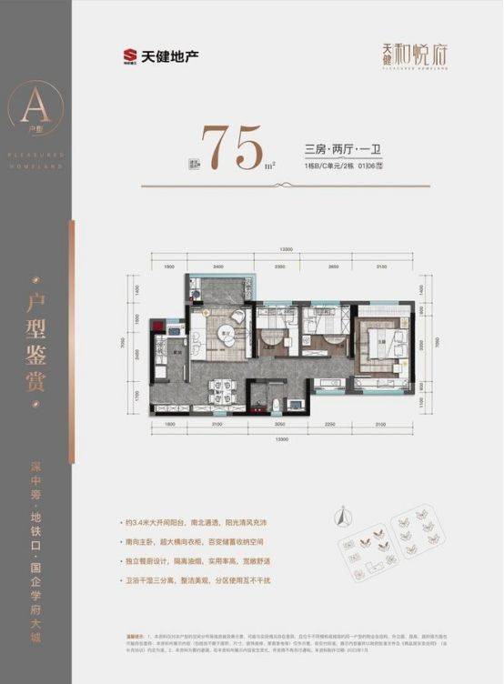 天健和悦府学区范围深圳中学坪山创新学校、坪山外国语学校、坪山第二小学、深圳高级中学。周边生态环绕,园林面积约3.2万㎡,绿化率约40%。项目首期预计推出688套建面约75-99㎡3房精装户型,高使用率大尺度产品。