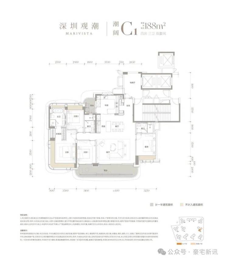 首推179套建面约143-168-188-260㎡,5栋顶楼还有一套488㎡大平层(带私人泳池,可定制化装修),得房率近100%,大概2027年底精装交付!