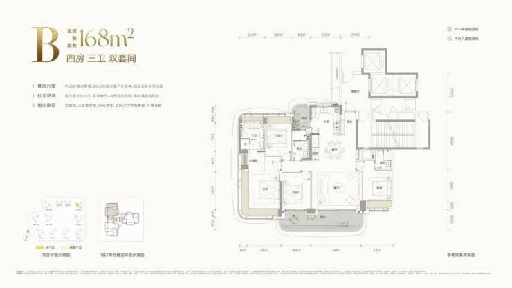 168㎡四房三卫(双套间)通透B户型