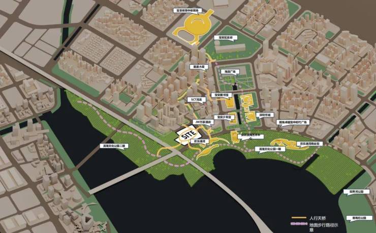 跨海桥连接宝安中心Vivo总部楼下裕安一路和腾讯岛纬二路,对于两岸来说是一个利好工程,进一步拉近了宝中和腾讯岛的交通距离。