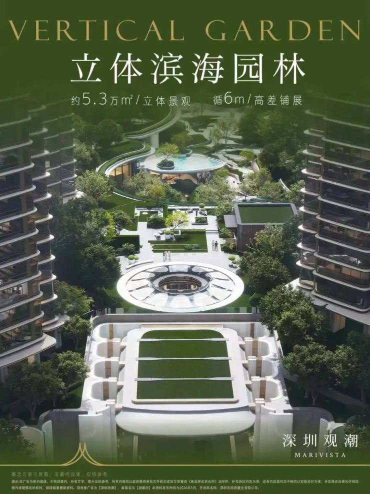 而「深圳观潮」占地约4.25万㎡,容积率3.41的数据中,小区花园占地就显得非常大。