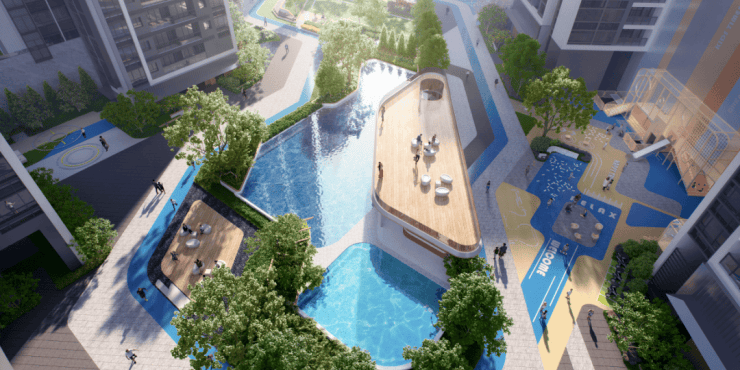 多元交互园林:空中运动花园、全龄亲子双游泳池、环氧跑道、稚趣IP乐园、城市会客厅等,亲子、社交、远动一应俱全;