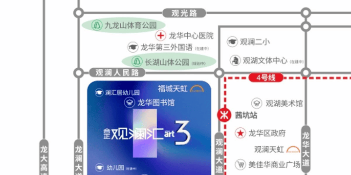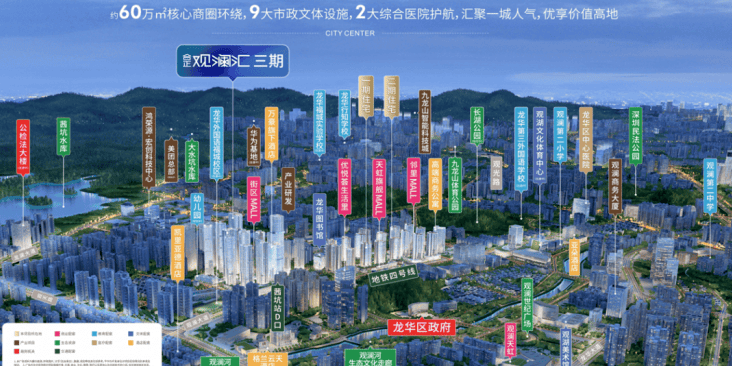 观澜,龙华行政中心,与红山商业中心、老政商贸中心形成龙华三大中心;