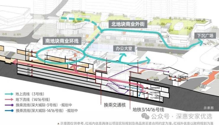 由深铁集团开发,项目总占地面积约5.66万㎡,将以总建面约52万㎡TOD大型综合体为基底,融合住宅、人才房、商业、商务等多元功能,打造为“枢纽上的城市会客厅”。项目分南北两个地块!与大运地铁站无缝连接(3+14+16+深大城际),是深圳罕见的“四轨交汇”地铁上盖物业。