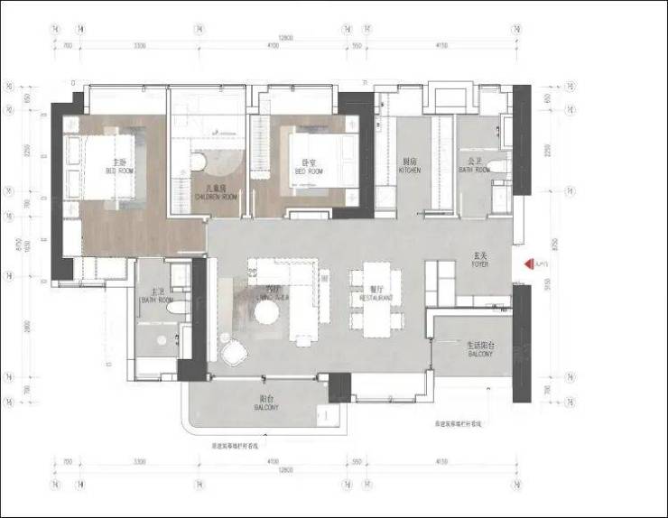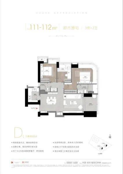 111㎡3房2卫户型:总价约1050-1160万;