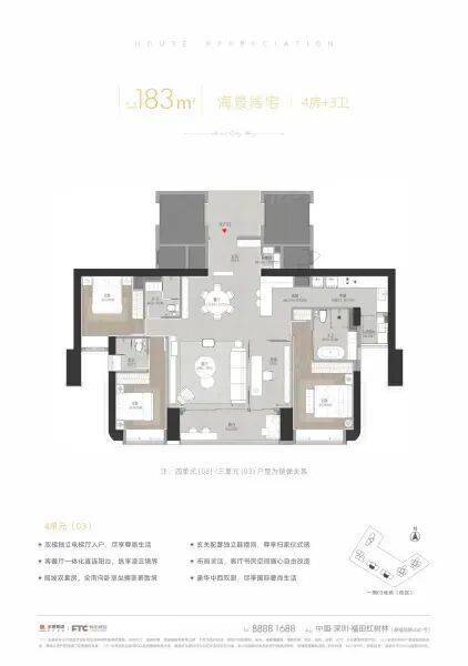 183㎡4房3卫;