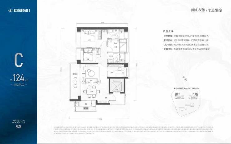 124㎡-4房2厅2卫,折后总价801-965万/套,单价6.5-7.77万/㎡。
