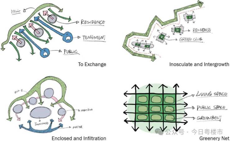 在设计中,我们注重山、居住区、城市之间的关系,探索与自然对话的可持续发展路径。