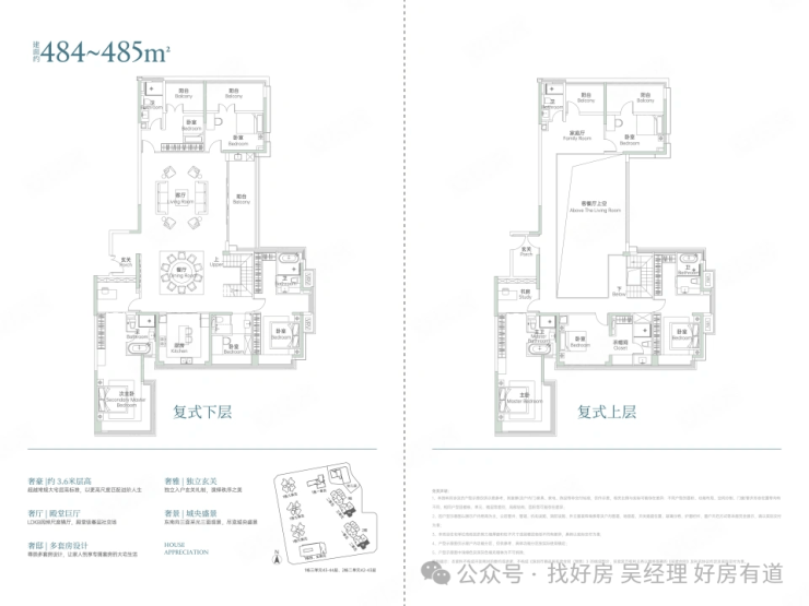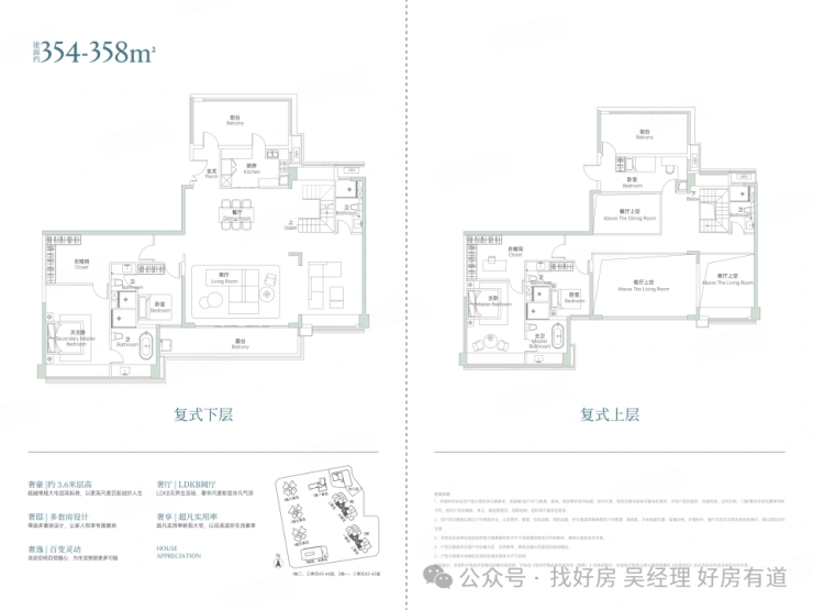 354-358㎡ 和 484-485㎡ 户型为顶复结构,分别位于2栋1单元和2栋2单元。这些超大户型空间极为宽敞,功能分区明确,堪称“空中豪宅”,不仅能在室内骑自行车,甚至看汽车都没问题。