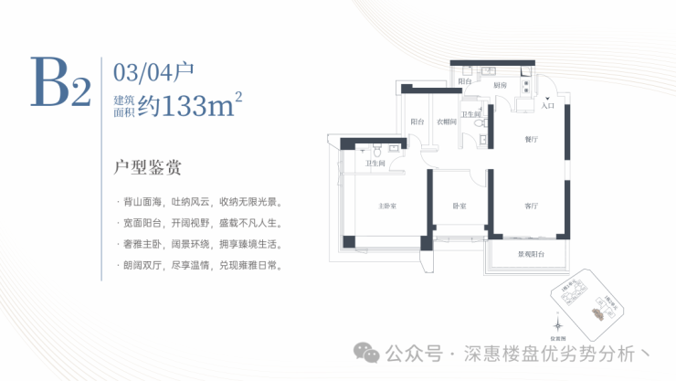 作为赤湾首排住宅,高层户型能享受270°无遮挡海景,背靠大、小南山和赤湾山,生态环境优越。喜欢自然景观的买家会心动,尤其是高区房源(如139㎡以上户型)视野开阔,居住体验加分。