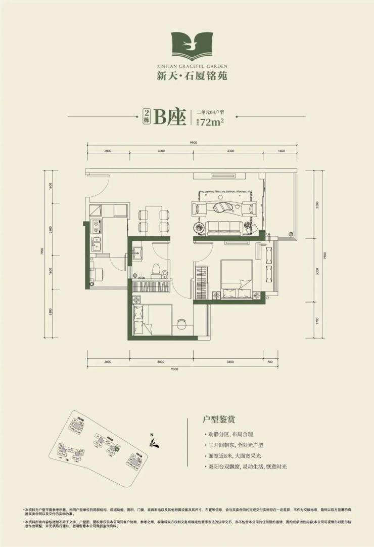 🔺2栋B座二单元04、05户型:面积约为72-74㎡的2房2厅1卫。