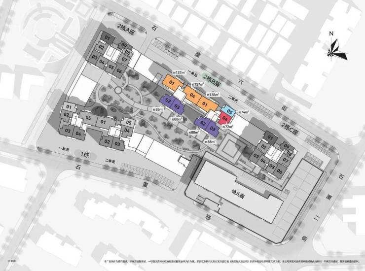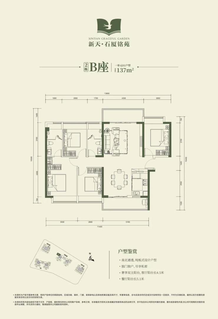 🔹2栋B座一单元01、04户型、2栋B座二单元01户型:面积约为137-138㎡的4房2厅2卫;