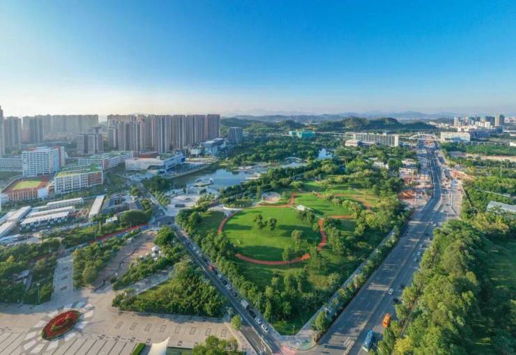坪山中心区呈三角形状,以“半月环公园”绿廊串联起商务办公、生活服务、行政文化三大功能板块。