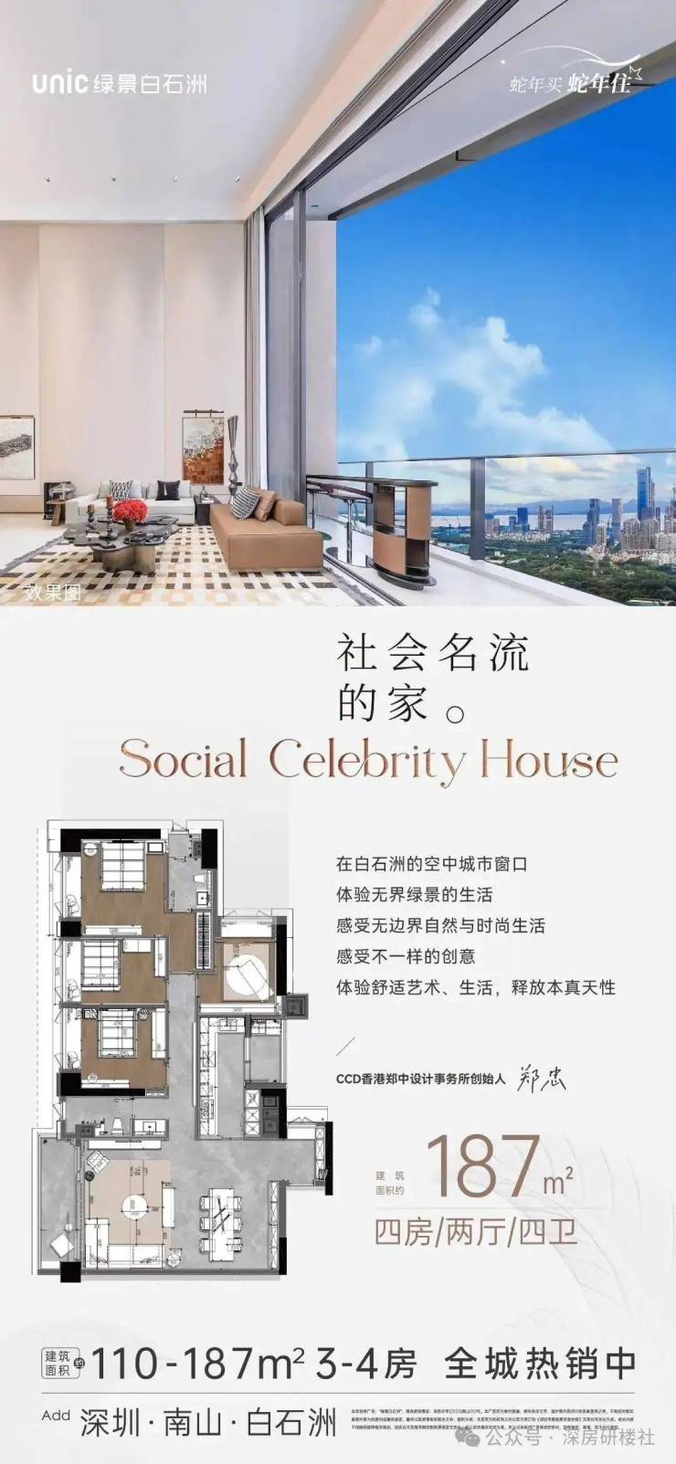 深圳南山【绿景白石洲】南山沙河,总价1000万起,买110-187平3-4房,豪装准现房,1号线世界之窗站。
