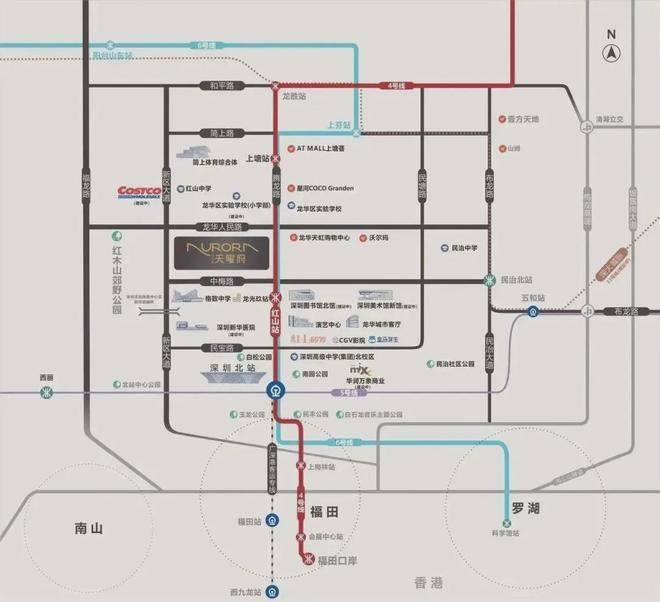 多维交通路网,距离地铁4&6号红山站约450米,通达全城。片区[五横/五纵]高密交通路网汇集,轻松实现15分钟到福田、30分钟到南山/前海。